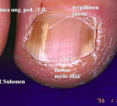 💡Muista: Kaikki kynsimuutokset eivät ole kynsisientä. Esimerkiksi psoriasis voi aiheuttaa samankaltaisia oireita. Diabeetikoilla riski haavaumiin ja tulehduksiin on suurempi, sillä tuntohäiriöt voivat estää haavojen huomaamisen ajoissa.